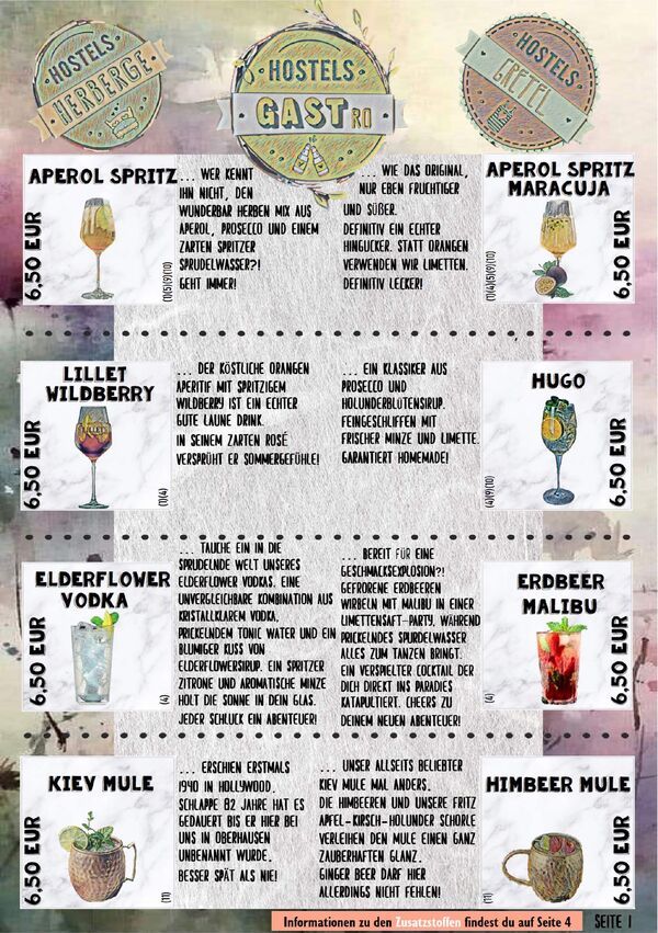Weitere Öffnungszeiten, Termine für Spätstücken oder deine eigene Feier gerne auf Anfrage. Tel.: +49 (0)208 8690884 Unsere Getränke